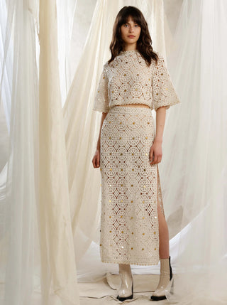 Self Portrait Women's Cream Fully Lined Functional Pockets Crochet Contrast Trim Mini Dress