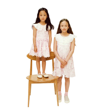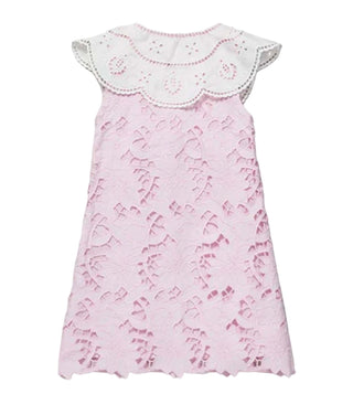 Self Portrait Guipure Kids Girl Pink Floral Lace Embroidered Cotton-Poplin Dress