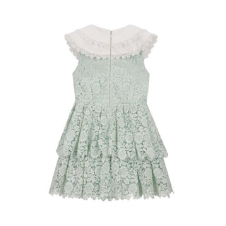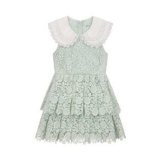Self Portrait Guipure Kids Girl Green Floral Lace Peter Pan Collar Double-Tiered Maxi Dress